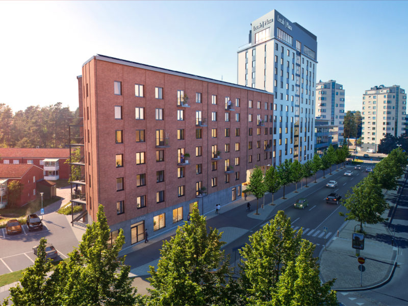 The project includes new construction of two buildings with 7 and 13 floors respectively, with a total floor area of 10,000 m². The 259 apartments are studios and single beds between 21-37 m² in size and will be premium residences with high standards in materials and equipment. The top floor is a common area for house residents with gym, studio lounge/conference room and a large outdoor terrace.