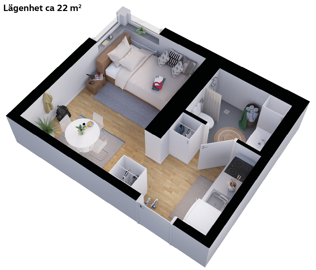 Lägenhet ca 22 kvadratmeter