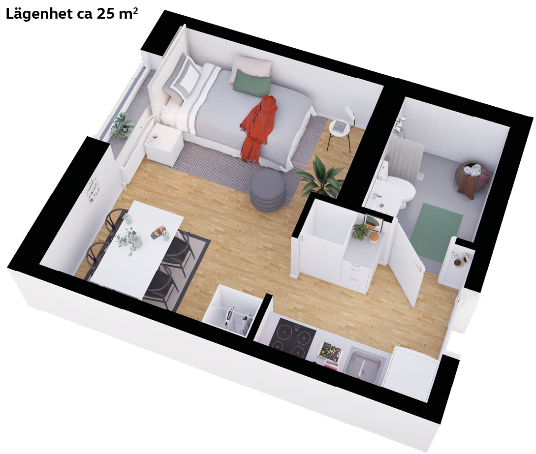 Lägenhet ca 25 kvadratmeter